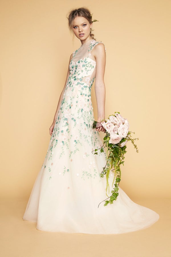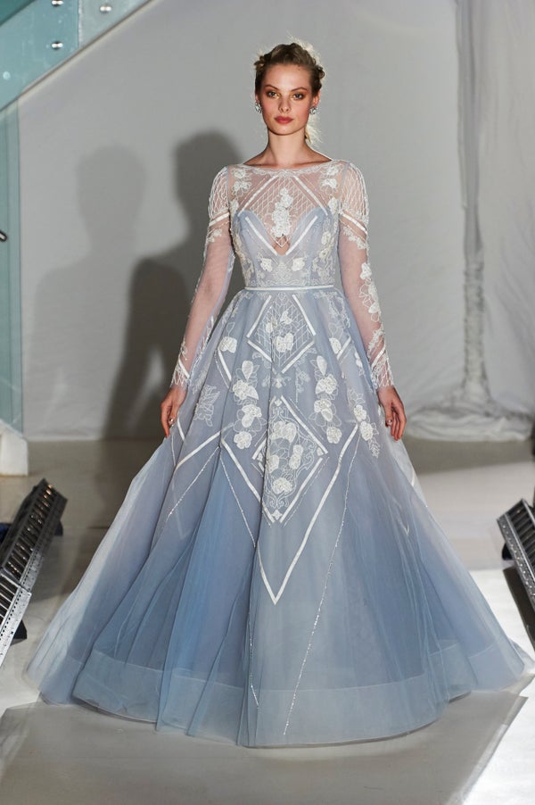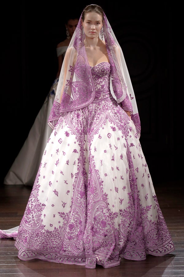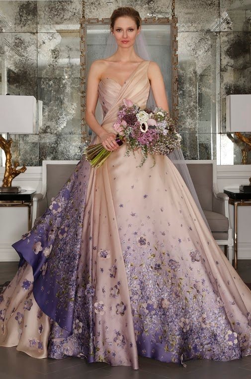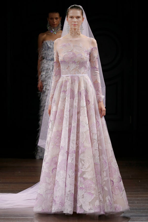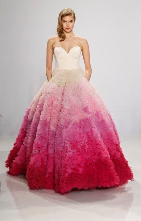 The spring 2016 bridal runways featured dresses in beautiful shades of pink, blue, green and purple. Check out some of our favorites below.